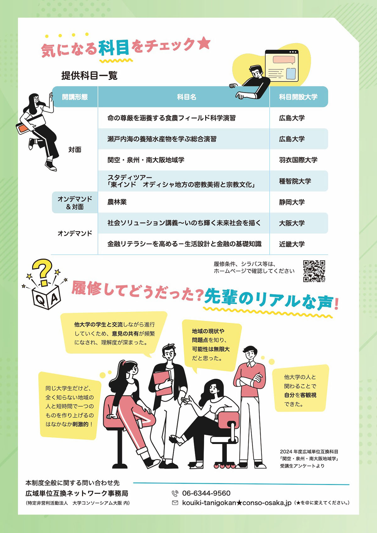 広域単位互換ネットワークの単位互換制度では、北海道・静岡・石川・京都・大阪・広島の6つの大学コンソーシアムが連携し、学生の皆さんに、その地域ならではの多彩な学びの機会を提供しています。