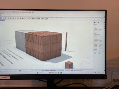 3Dデザイン、大物粘土成形の講義を受けるDデザインソフトのFusion365 は使ったことがあったが、Rhino は初めてで、基本的な使い方を学んだ。扱ってみて興味深く勉強になったが、自分には実際に手を使ったモデル作りが