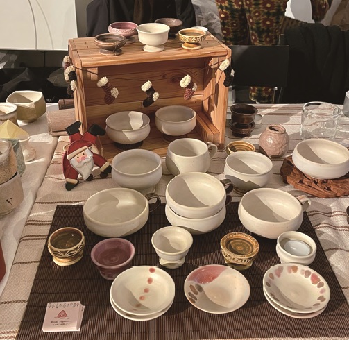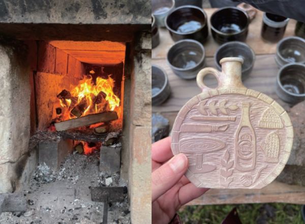 薪窯に参加する学校の敷地内に3つ小ぶりな薪窯用の窯があり、年に5回ほど窯焚きがされる。一日かけて 1200°になるまで何人かで交代しながら火に薪を焚べ、じっくり温度を上げていく。