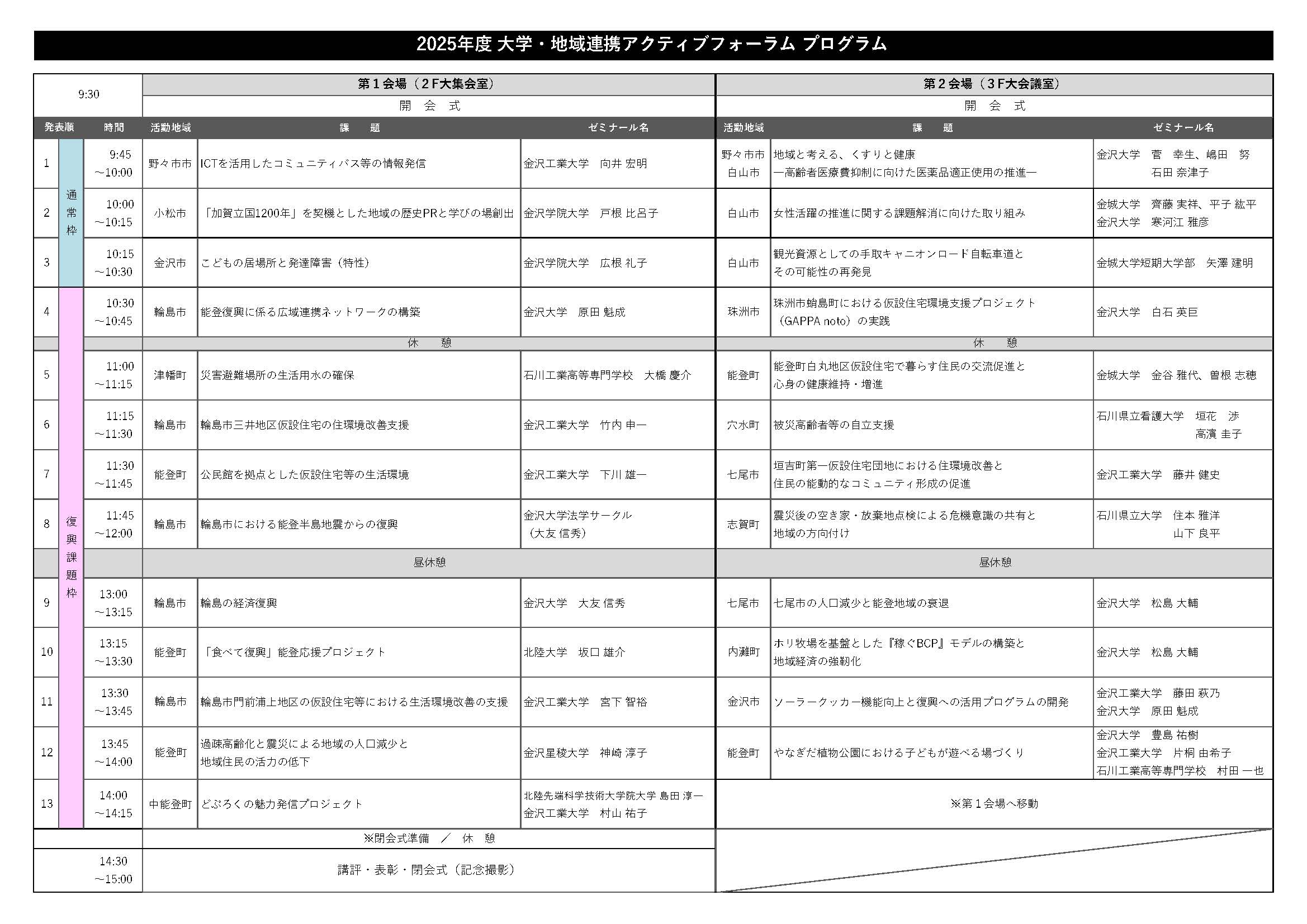 HOME地域課題研究ゼミナール支援事業お知らせ25年度大学・地域連携アクティブフォーラムプログラムを公開いたします。